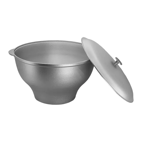 | Описание: | Казан кухонно-печной округлой формы с двумя литыми ручками, крышкой и жаростойкой кнопкой для приготовления пищи в русской печи и духовом шкафу. |
