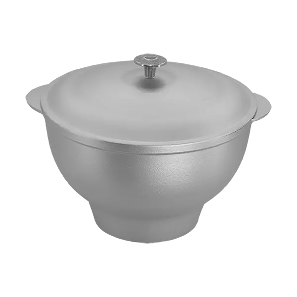 | Описание: | Казан кухонно-печной округлой формы с двумя литыми ручками, крышкой и жаростойкой кнопкой для приготовления пищи в русской печи и духовом шкафу. |