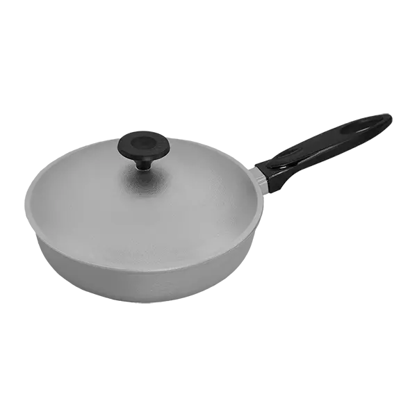 Описание: Сковорода алюминиевая с пластмассовой ручкой и крышкой.