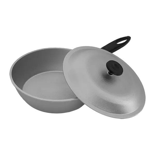 Описание: Сковорода алюминиевая с пластмассовой ручкой и крышкой.