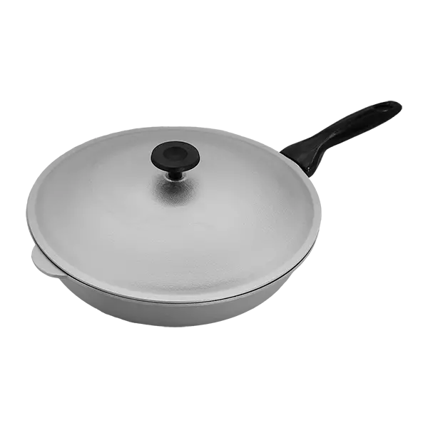 Описание: Сковорода алюминиевая с пластмассовой ручкой и крышкой.