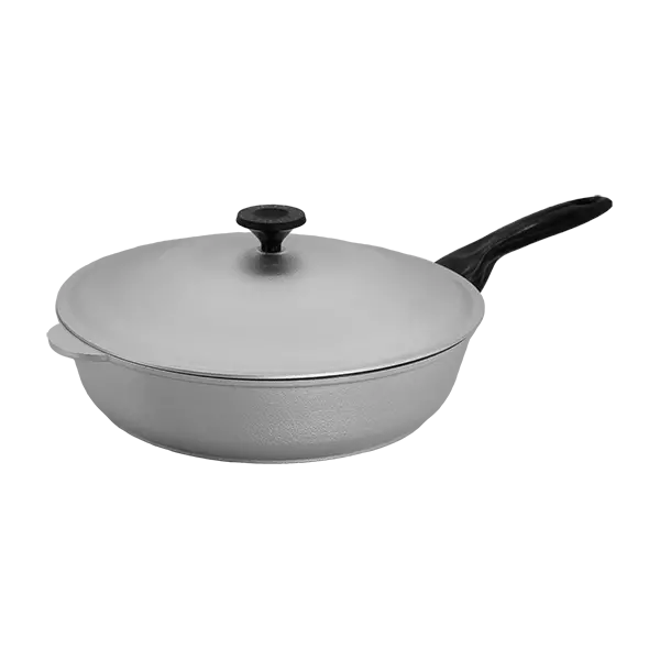 Описание: Сковорода алюминиевая углубленная с пластмассовой ручкой и крышкой.