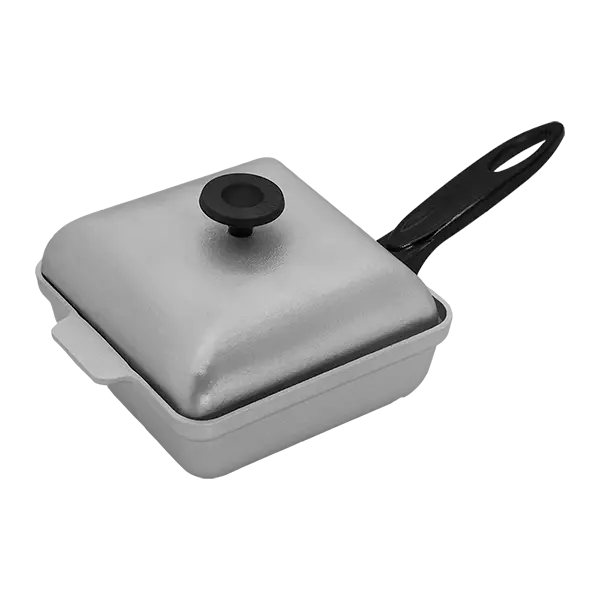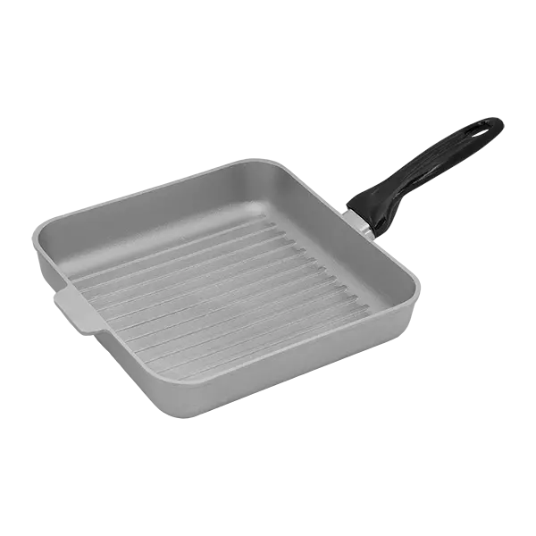 Описание: Квадратная алюминиевая сковорода – гриль с  пластмассовой  ручкой и крышкой.