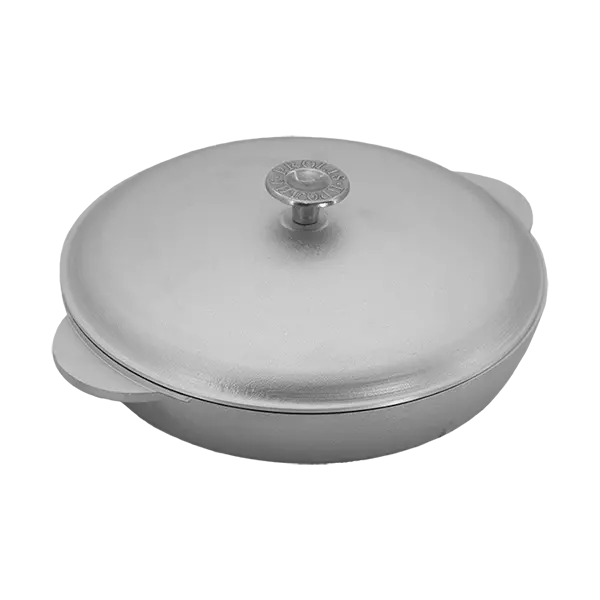 Описание: Сковорода сотейник алюминиевая  с двумя литыми ручками и крышкой